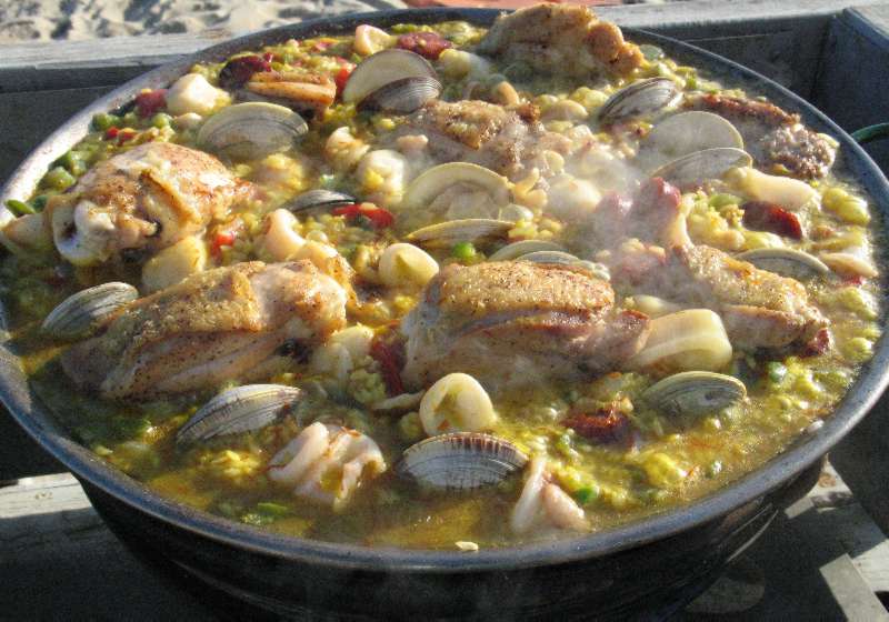 This year’s round of nothing included lots of knitting and reading time, a whale watch, some golf, watching the opening night of a thoroughly enjoyable Much Ado About Nothing, a couple of excellent dinners out, plus several equally excellent ones we prepared ourselves. Including paella on the beach – cooked on the grill against a Provincetown sunset: