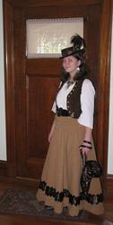 Younger daughter wore this to the Waltham Watch City Steampunk Festival, at the Charles River Museum of Industry and Innovation. After planning and accumulating the bits for the better part of the year, she was thrilled to do so, and had a great time.