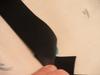I’m at the first step (upper left of the diagram), slicing the camo fabric off from the foot of the skirt and picking out the box pleated corners: