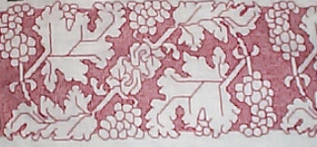 When you get close to the basting line that describes the edge of the section you are working on pause. Decide whether you want to continue the design right up to the edge, or if you want to stop (possibly at the natural edge of your repeat, or at some unobtrusive place in it) and save the remaining area to do a border. That’s what I decided to do on my two sample books above. Any narrow geometric band – even just parallel straight lines – can be used to frame the center design and draw the eye away from truncation of the center design.