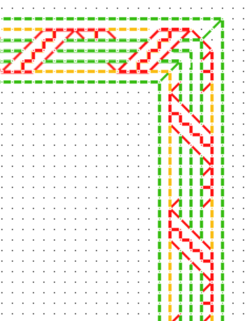One thing I’ve toyed with is instead of using shading to indicate areas to be covered in voiding, using it instead with a color to emphasize the count, for the folks who like to baste guide lines onto their ground, to assist in keeping their place. That would look something like this: