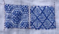 Long time friend Kathryn (Mistress Kathryn Goodwyn in the SCA) used a design from TNCM on a hand knit sock. The square unit graphs are useful for more than counted embroidery. You can knit from them, work tapestry or filet crochet, do darned laces on net or a woven ground (Lacis or Burrato), weave, or even do tile patterns using them.