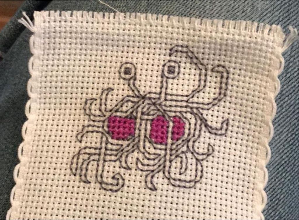 This is a brag page, where I point at the creative folk who have used the patterns, designs, and project descriptions on my page to come up with their own work. It made my day to see each and every one of these projects. I’ve used individual blog posts for this before, but having a permanent location will be far more fun. Eventually this will include both stitched and knit pieces. All previous long-buried Gallery posts here on String will be scraped for content and that content will be ported here as well. Apologies if you sent me a photo that isn’t included – no editorial or other judgmental opinions are being expressed. Some photos have fallen off emails, links have died, or the address I have for you and wrote to for permission is no longer active.