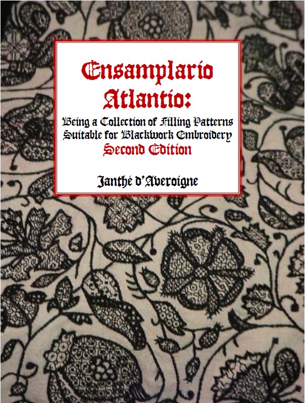 I’ve taken the original book, corrected some mistakes and typos, added four new pages (24 individual designs), and stitched it back into one single file. Ensamplario Atlantio, Second Edition is now up and available for free download. Having the thing in one piece should make using it easier. And it will make keeping track of it easier for me.