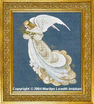 Figural cross stitch isn’t new. It isn’t modern. But it has morphed into a recognizable modern style that has migrated from its pre-1600s cognates. The photo below is of a contemporary sampler designed by Marilyn Leavitt-Imbloom, for Lavender and Lace. It’s entitled “Angel of Dreams” and is widely available for purchase (a quick Google search will turn up retailers):