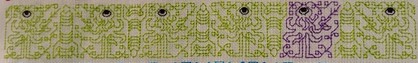 134 stitches wide x 16 stitches tall. 2 blank rows left between this and the following strip. If worked as a continuous band, one full repeat in 23 units.