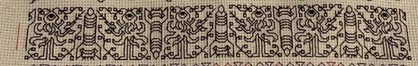 134 stitches wide x 15 stitches tall. 2 blank rows left between this and the following strip. If worked as a stand-alone continuous band, one full repeat in 15 units.