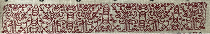 ![]() | 28 count evenweave | Double running, 2 plies | About 1 yard of red, 1 yard of green, .75 yard of blue, remnants of yellow |