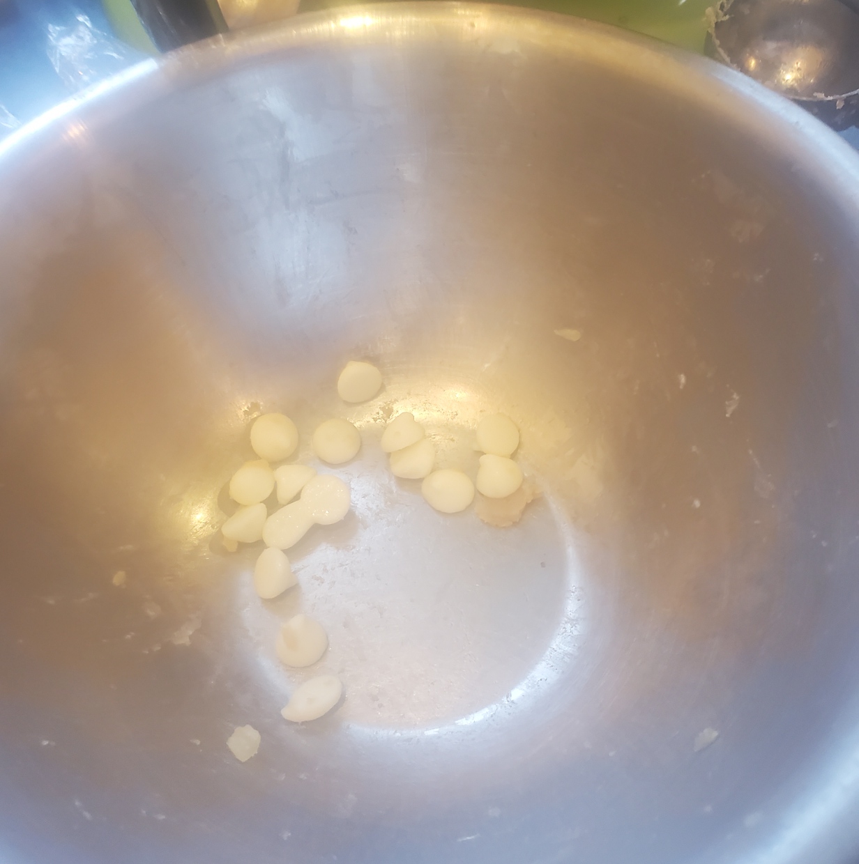 It looks pretty normal, although the dough isn’t “sticking” to the chips like it usually does. But I continued on. I always fridge this type of dough overnight before portioning it out and baking it.
