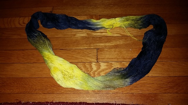 Last month she posted that she’d just finished dyeing a black/yellow combo, and posted pix. It sang to me: